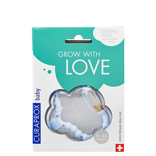 Прорізувач Curaprox Baby Blue з м'яким брязкальцем для прорізування зубів (0-24 місяців) — це ідеальний помічник для малюка в період прорізування зубів. Розроблений спеціально для полегшення неприємних відчуттів, він поєднує в собі функції прорізувача та іграшки-брязкальця, що не тільки допомагає заспокоїти ясна дитини, але й сприяє розвитку дрібної моторики та сенсорних здібностей.